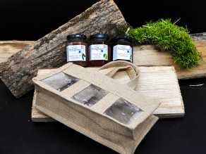 Lot de 3 mini confitures de Savoie dans leur sac cadeau en toile de jute